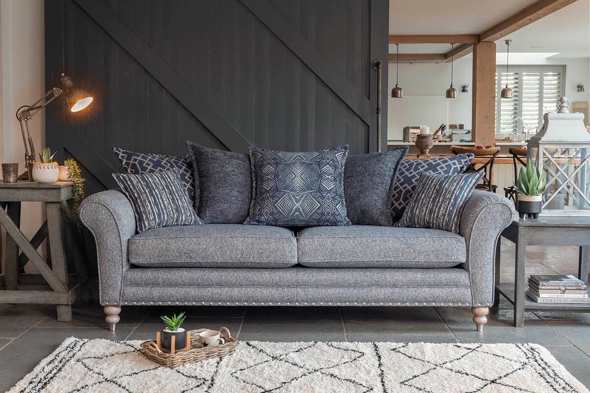 Cleveland continues to inherit the hallmarks of high quality detailing that we associate with the best of British manufacturing. Hand finished turned legs from characterful ash in a choice of our beautiful warm grey wash or antique finishes, bring timeless appeal that work well in city or country homes alike. Every piece is hand crafted with meticulous detailing, soft pleated scroll arms are a nod to classic, yet the look remains soft and casual with a further option of carefully finished pewter studwork. The fabric palette of soft greys and slate velvety chenille’s combine perfectly with a mix of smart houndstooth checks or a fusion of more textured global accents to sit with our boucle herringbone plain.