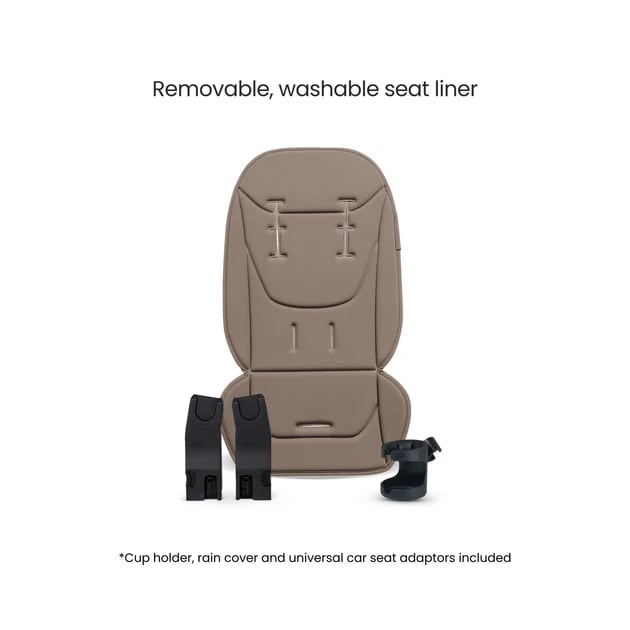 Ready to ride from newborn to toddler, the lie-flat, reversible pushchair seat keeps little one comfy on every stroll – with a sculpted, crumb-catching liner, zip-open ventilation panel for summer days, and adjustable calf support for tired legs. The two-height elevation system means baby’s always within reach and can be activated in any stroll mode – perfect for taller parents.