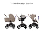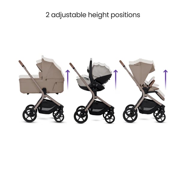 2-height elevation system brings baby closer in carrycot, pushchair or car seat mode