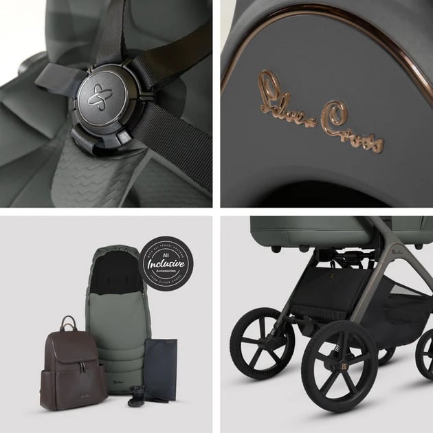 Silver Cross Cove Pewter Travel System Ultimate 360 Infant Carrier Bundle (10 piece)