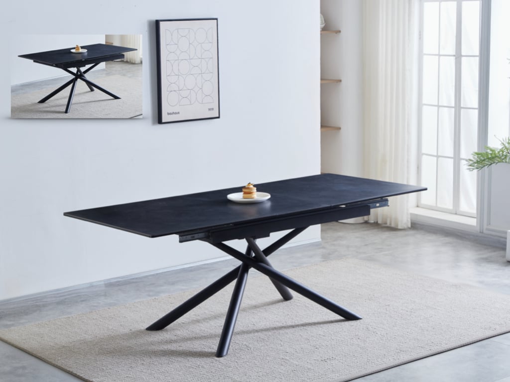 Ventura Dark Grey 1.6m Extending to 200cm Dark Grey sintered stone tabletop & 6 Redmond Dark Grey & Beige Chair.