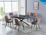 Ventura 1.6m Extending to 200cm Dark Grey sintered stone tabletop & 6 Redmond Light Grey & Tan Chair.